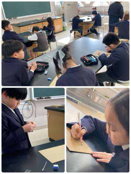 3年生は理科で、磁石について学習しています。この日は、磁石を動かす迷路を作りました。想像力を働かせながら、オリジナルの楽しく取り組める迷路ができ上がりました。