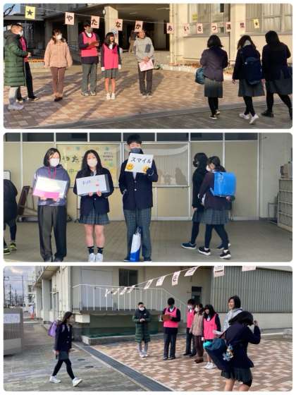 定期的に意識づけを行うことで、より自然なあいさつが定着するように、児童生徒会が様々な取り組みで啓発を図ってくれています。