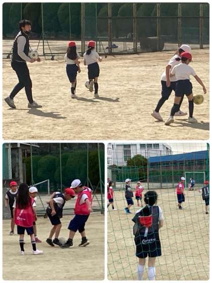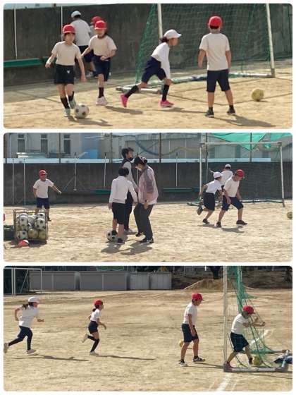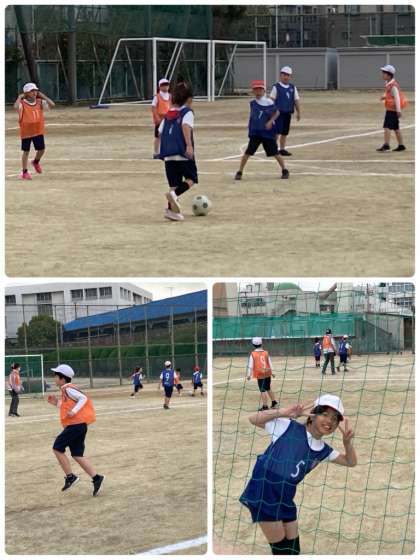 3年生は体育で、サッカーをしています。試合形式にも慣れてきました。サッカーを習っている子たちは、チームみんなが上手になるように、パスを出したり声をかけたりしてのぞんでいます。