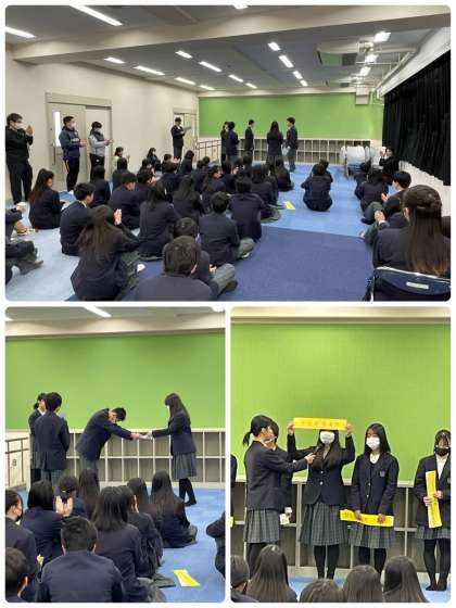 本日の中学校集会では、今年度最終の各委員会活動の目標と具体的方策の発表がありました。また、今月実施したあいさつ週間での学年対抗あいさつコンテストの結果発表と、表彰が行われました。あいさつ週間中はコンテストを楽しみながら、笑顔であいさつを交わす場面が多くみられました。爽やかなあいさつ、ぜひ習慣にしたいですね。