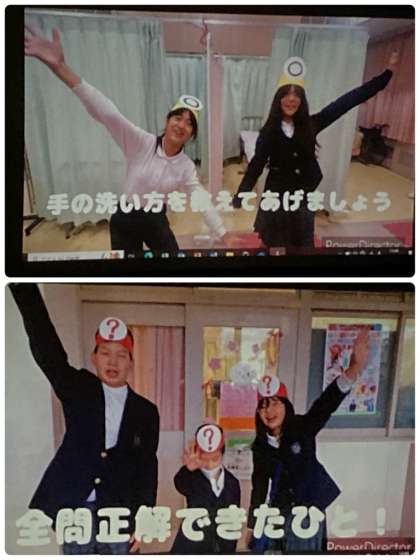 学校歯科医さんと学校薬剤師さんをお招きして、学校保健委員会を開催しました。小学部の保健給食委員会の児童が、手洗いへの啓発動画を作成して、みんなで模擬実践しました。