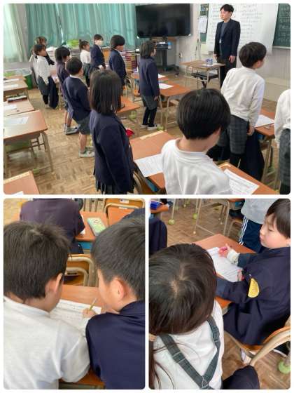 もうすぐ2年生になる1年生は、新1年生が入学してきて、自分たちがどんなサポート活動ができるのかを考えていきました。この1年間をふり返りながら、たくさんの人たちに支えられてきたことを思い出して意見を出し合いました。