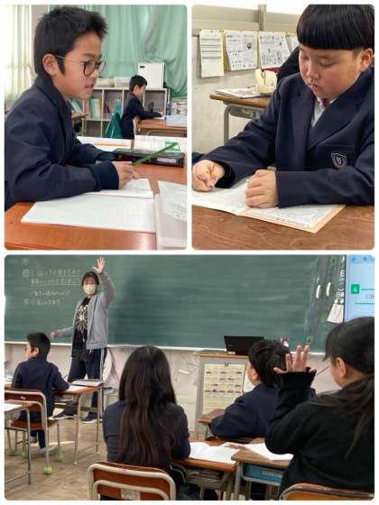 4年生は様々な形態で算数の学習をしてきました。学級2分割の少人数授業をしながら、効果的に一斉指導も取り入れて、子どもたちの実態に応じて工夫してきました。