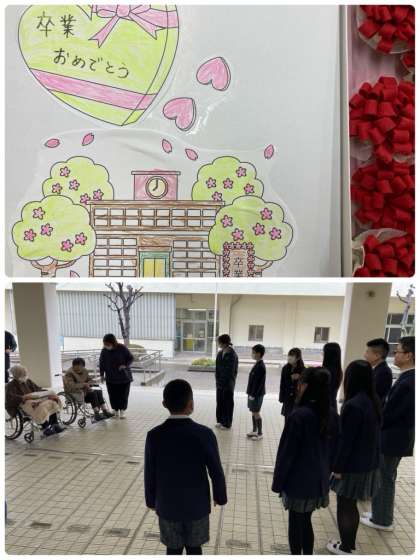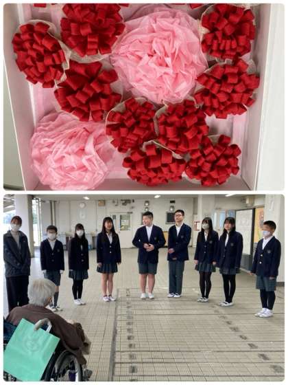 6年生が、地域の特別養護老人ホームの方々に作っていただいた胸花を受け取りました。卒業式当日は、これを胸に付けてのぞみます。たくさんの方々に、見守られていることも感じながら、当日を迎えてほしいです。