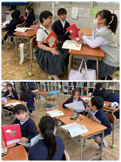2年生は国語「お手紙」の学習で、登場人物の気持ちの変化を読み取り、ペアで交流しました。繊細な心情も読み取ることができており、感受性豊かな2年生の様子が見てとれました。