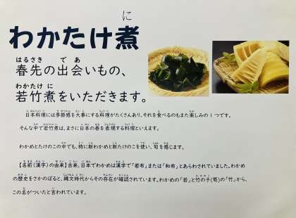 日本には季節感を大切にする料理がたくさんあり、それを食べるのもまた楽しみのひとつです。春先の出会いもの【わかたけ煮】を春を感じながらいただきました。