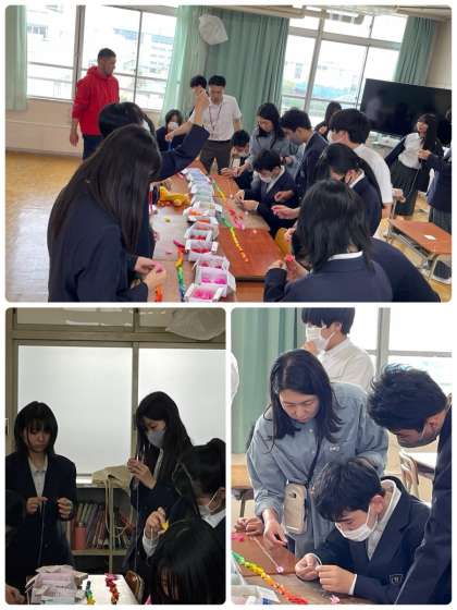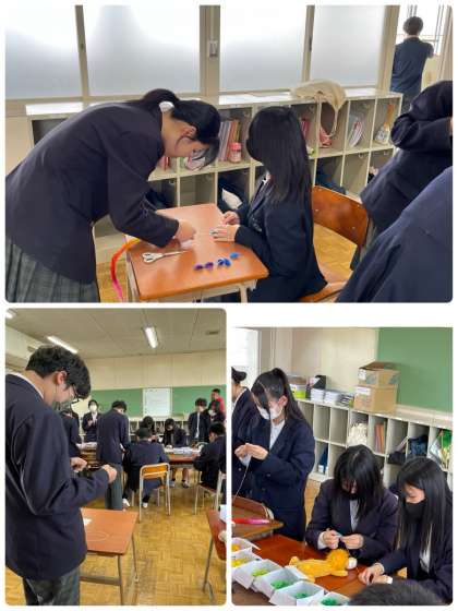 9年生は修学旅行に向けて、広島平和記念公園に奉納する千羽鶴の制作を行っています。折り鶴は、全学年の児童生徒で折ります。