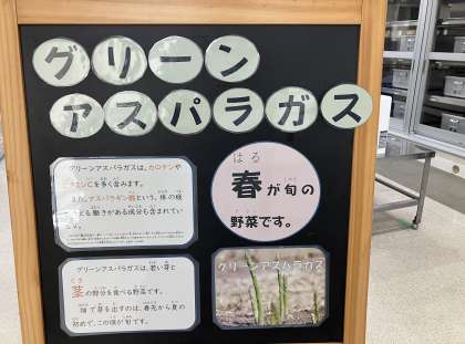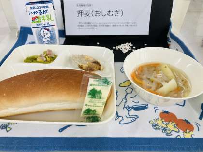今日の献立は「かつおのガーリックマリネ焼き、押麦のスープ、グリーンアスパラガスのソテー、コッペパン、ソフトマーガリン、牛乳」でした。日本では、季節ごとにおいしい食べ物が収穫できます。自然の恵みに感謝し、旬の食べ物を味わってみましょう。