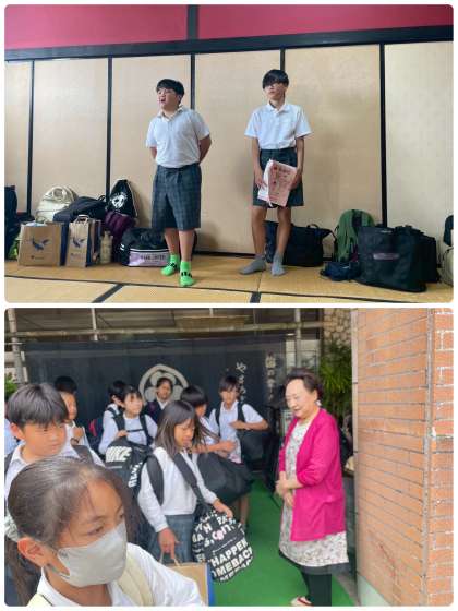 お昼ご飯を食べて、ふり返りをしたあと、閉舎式を行いました。楽しい時間はあっという間で、学校に向けて出発しました。