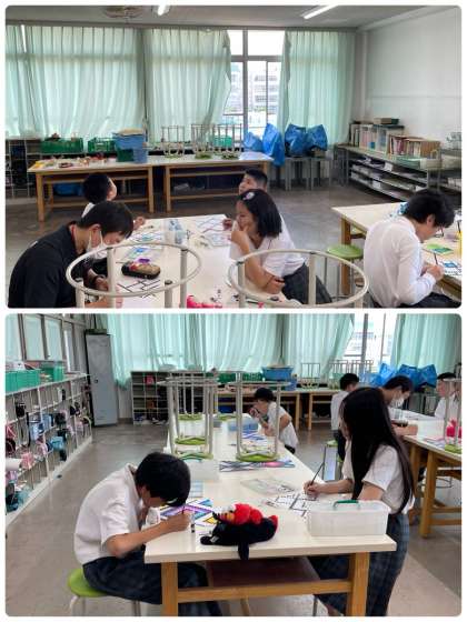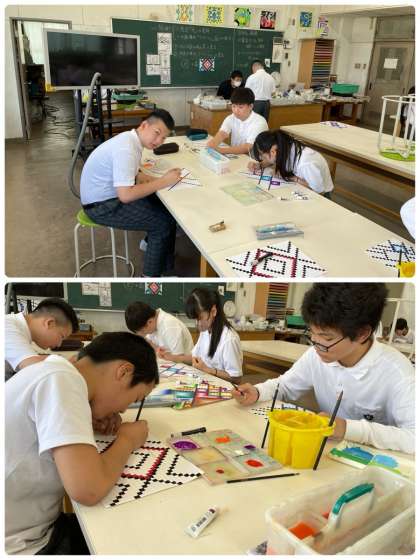 濃淡を工夫することにより、立体感が生まれます。使う色合いも人それぞれで、個性が発揮されています。完成が楽しみです。