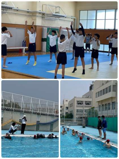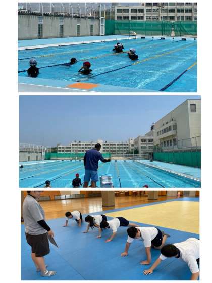ケガ等でプールに入れない生徒たちも各自トレーニングに取り組んでいます。