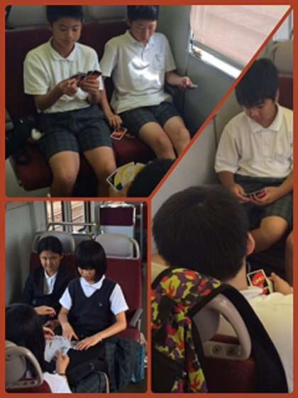 閉舎式も終え、帰りの電車も大阪に向けて出発しました。車内では子どもたちはまだまだ元気そうです。