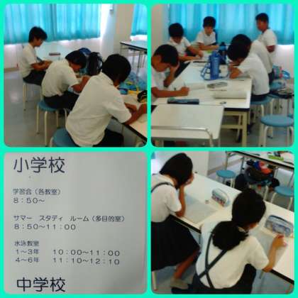 夏休みが始まりました。サマースタディルームに参加している友達もたくさんいます。朝の涼しい時間にたくさん勉強して、頑張っています。