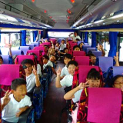 赤松SAでトイレ休憩をとり、また神鍋高原に向けて出発しました。バスレク係を中心に楽しんでいます。みんな元気です。
