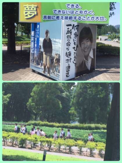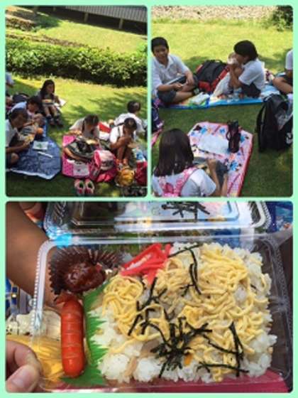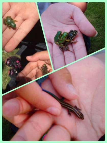 植村直己冒険館に到着しました。今日の昼食は、ちらし寿司です。さっそく、かえるやトカゲを見つけています。