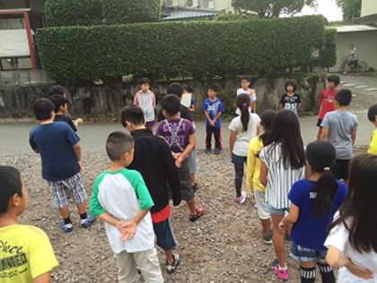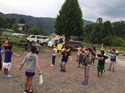 2日目が始まりました。自然の中で、ラジオ体操で体を起こします。体調を崩す子も出ず、みんなそろって2日目の活動がスタートしました。