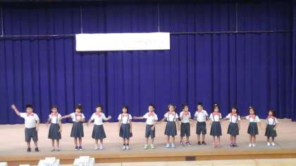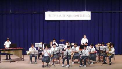 9月10日(土)に矢田中地域敬老大会が本校で行われ、式典の後の演芸会で中学校音楽部と小学校1年生が出演しました。