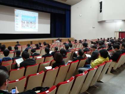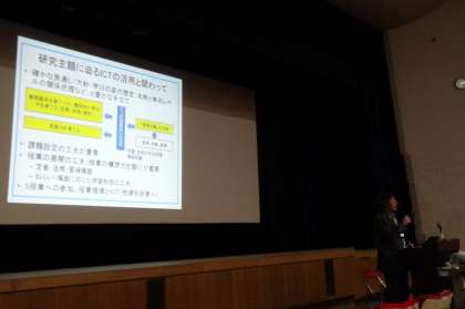 ICT公開授業、分科会に引き続いて、本校講堂において全体会を行いました。全体会では、本校が2学期に実践してきたICTの活用事例を紹介しました。その後、奈良教育大学の小柳和喜雄様よりご講演をいただきました。演題は、『思考力・判断力・表現力の育成と関わるICTの活用について』です。そのご講演の中で、ICTの活用に対する評価についても触れていただき、今後の本校の取り組みを考える上でのヒントをいただきました。当日は、公開授業・分科会・全体会と長時間にわたり、ご参加ありがとうございました。皆様にいただいたご意見や励ましを、さらに今後の取り組みに生かしていきたいと考えています。