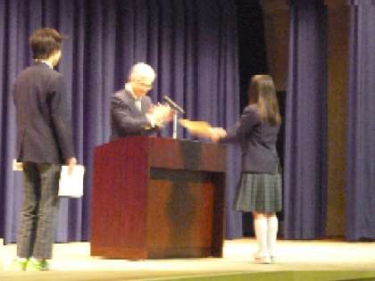 12月25日(水)、2学期の終業式を迎えました。つい少し前まで暑い日が続くな〜と感じていたような気がするのですが・・・。振り返ってみると、2学期には、体育祭や文化祭をはじめ、社会見学や校外学習などたくさんの行事がありました。それらの行事での子どもたちの活躍を見ている間に今日の日を迎えることとなってしまいました。終業式の始めには、先日受賞しました「税の作文」「税の習字」「大和川クリーンキャンペーン絵画コンクール」の表彰状を渡しました。