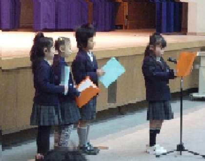 3学期の始業式の中で、4年生と2年生の代表が、「2学期にがんばったこと!3学期にがんばりたいこと!」を発表しました。「算数が苦手なので、3学期はがんばります!」「速く走れるようがんばります!」「なわとびをがんばります!」「外国語をがんばります!」等々。みなさん、期待していますよ!!