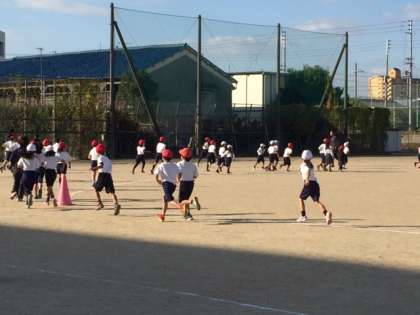12月のマラソン大会に向けて、かけあし集会が始まりました。音楽に合わせて元気に走っていました。教室でかけあしカードをもらい、休み時間も元気に走っている子もいました。