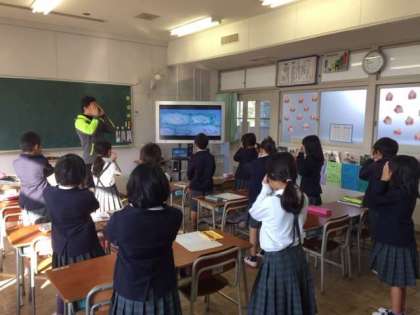 やたなかタイムの時間に、2年1組から元気な歌声が聞こえます。低学年では、歌うことを通して英語の表現を学んでいます。2年生の今月の歌は「The Weather Song」です。体全体を使って楽しそうに取り組んでいました。