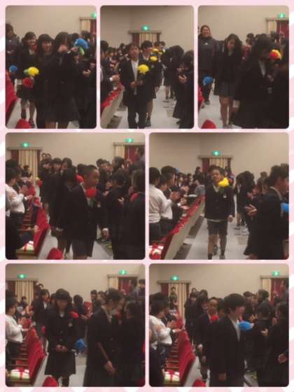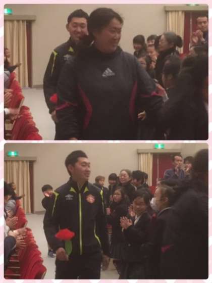 6年生から、お礼に歌と合奏を贈りました。さずが6年生と思う息の合った合奏を聞かせてくれました。最後、みんなに見送られながら恥ずかしがりながらも胸を張って退場していく6年生の姿は、とても凛々しく力強かったです。