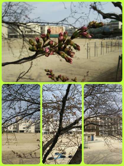 運動場のさくらの木も、ピンク色のつぼみが見え始めました。来週の入学式には、花が咲いてくれるといいですね。