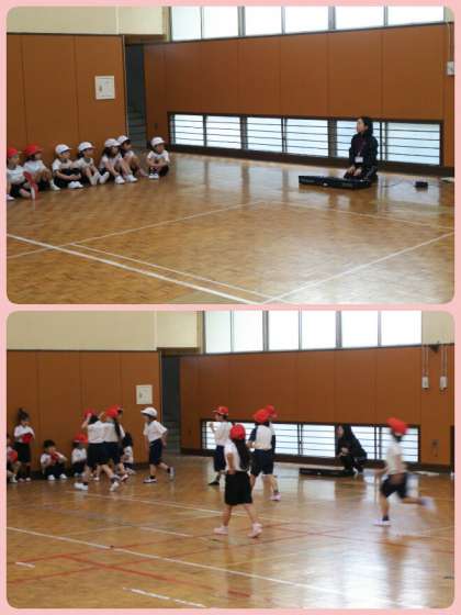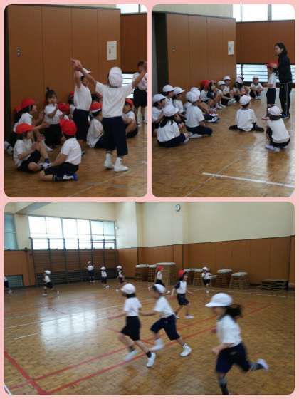 先生の弾くオルガンに合わせて、リズムよく動いています。