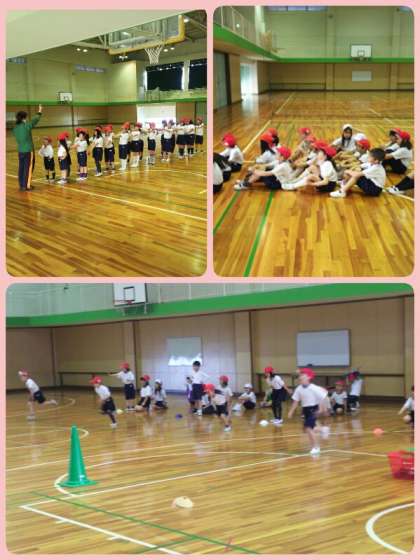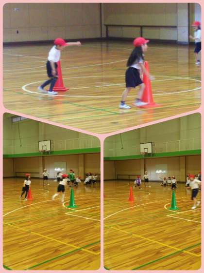 リレーでは、コーンを上手に回り、最後まで全力で走ることができました。