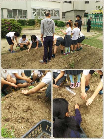 かぼちゃの苗を植えました。雄花と雌花の違いを、自分たちの目で観察できたらいいですね。