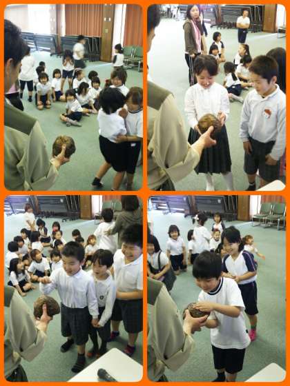 天王寺動物園のスタッフの方に来ていただき、動物について学習しました。動物のうんちの大きさには、子どもたちもびっくり! 実物大にも触らせてもらいました。24日の遠足では、学んだことを実際に見て確かめましょう。