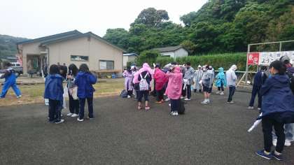 あいにくの小雨模様ですが、9年生はみんな元気です。