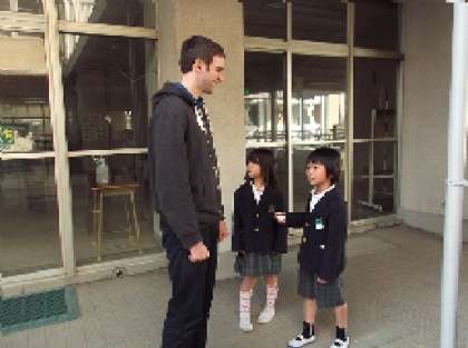 2年生が順番に、C-NETさんを学校案内しています。案内先は、いろいろ。学校生活の中で、よく使う場所などを案内しました。自分たちの教室・外国語活動をしているプレイルーム・校長室・ランチルーム・運動場・体育館などなどです。もちろん、練習した英語を使ってです。うまく案内できたかな?