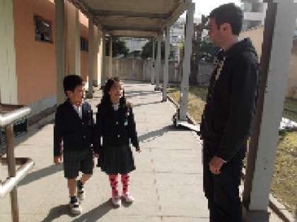 CーNETさんを講堂にも案内しました。講堂、英語で何というのでしょう?それから、その先は体育館があります。体育館は?・・・「gym」でしょうか?案内した2年生は、みんな覚えています。