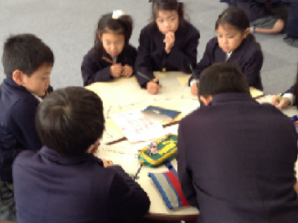 最後に、2年生も5年生も「今日の授業の振り返り」をしました。2年生からは、「クイズを作ってくれてありがとう。またやりたい。」、5年生からは、「2年生がかしこくて驚いた。」「クイズを作ってよかった。」という声がたくさん出てきました。『2年生のお礼のメッセージ』『5年生のふりかえり』を、いくつか載せていますので、外国語通信 第28号をご覧ください。