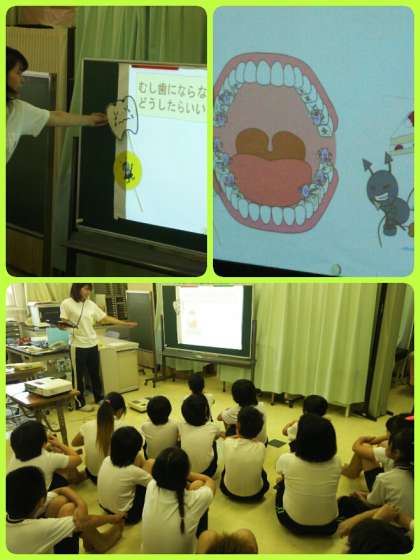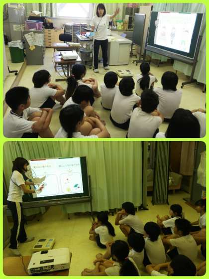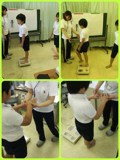 保健指導で、むし歯の予防について考えた後、体重測定をしました。まもなく、プール水泳が始まるので、爪のチェックもしました。体の成長とともに、日々のケアも忘れずにしていきましょう。