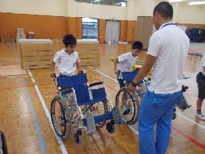 3年生は、『車いす体験』をしました。体験学習にあたっては、講師の方にお願いして来ていただきました。まずは、車いすの扱い方から教えていただきました。