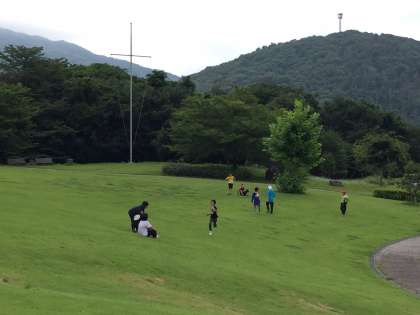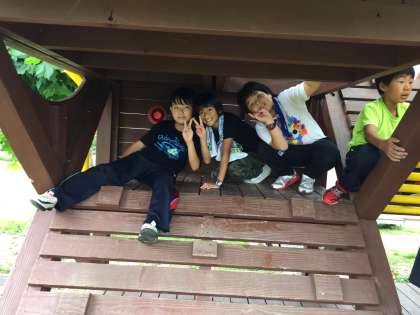 下山後、但馬ドームのアスレチックで運動しました。みんな、本当に元気です!