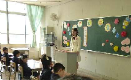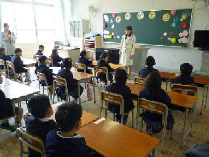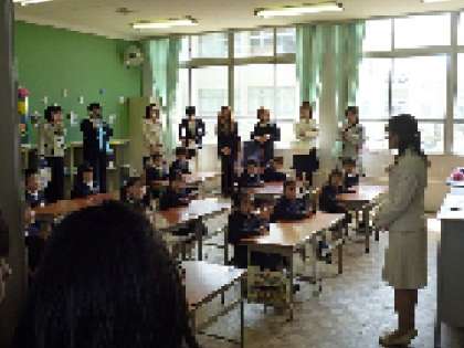 講堂での保護者の皆様への話を終えて、担任の先生が教室に入ってきました。はじめての担任の先生のお話です。期待にいっぱいの様子で、みんなしっかりお話を聞いていました。
