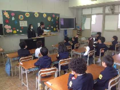 やたなか小中一貫校では、毎週水曜日は『朝の読書』を1年生から9年生までの全学級で行っています。また、施設一体型小中一貫校の利点を生かして、『ピア・サポートを活用した異学年交流』も実施しています。その活動の1つとして、6年生が1年生の教室へ行って、『絵本の読み聞かせ』を行っています。6年生は、少し緊張しながらも、1年生に楽しんでもらえるよう一生懸命がんばっています。