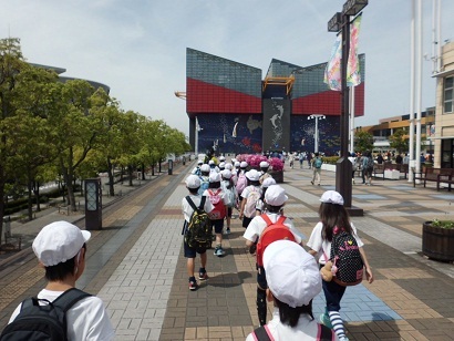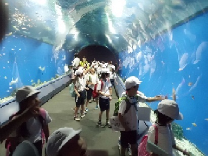 3年生は、春の遠足で『海遊館』に行ってきました。海遊館の中に入ると、水槽のトンネルがあります。まるで、海の中に入っているような気持になってきます。みんな、興味深そうに見ていました。