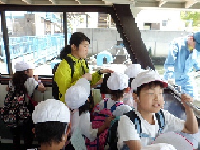 帰りは、渡し船に乗りました。渡し船に乗るところで、みんな大喜びです。