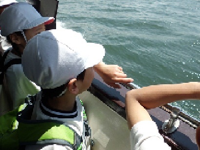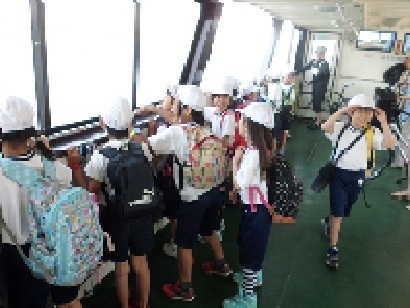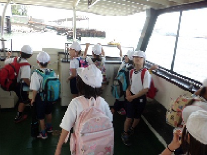 渡し船からの風景を満喫しました。ずっと外の様子を眺めている子どもたちの姿が印象的でした。