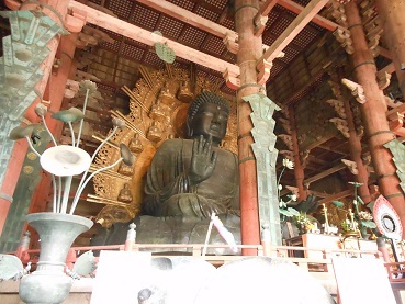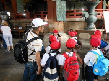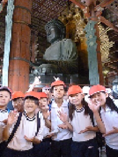 大仏様の前で、4年生のおちゃめどアップ。同じポーズで写真を撮ってみました。でも、先生からいろいろ教えてもらって、勉強も忘れません。