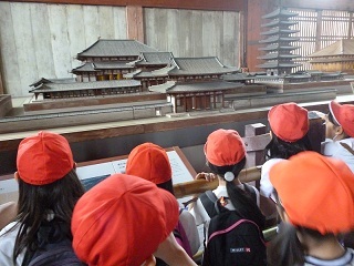 昔の模型も展示してあり、みんなで見ました。大仏殿の外の景色も楽しみました。