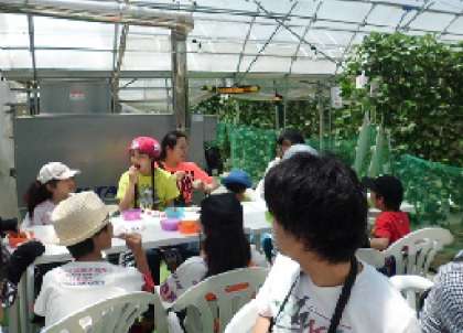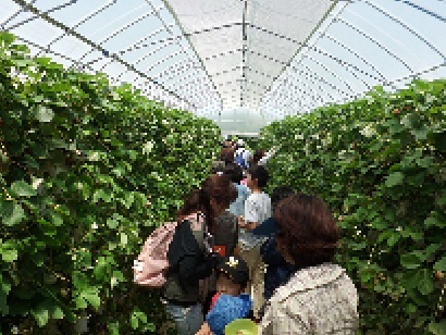 水耕栽培のハウスの中には、たくさんのいちごがなっていました。それを1つ1つとっていくのが楽しくて、すぐに容器がいっぱいになりました。いちごを取ってその場で食べたり、とったイチゴを持ってきてテーブルで食べたり・・・と楽しい一時でした。自分で取ったいちごは、とっても甘くうれしい気持ちになりました。ジュースやお茶、アイスクリームも食べ放題で、とても贅沢な時間を過ごしました。