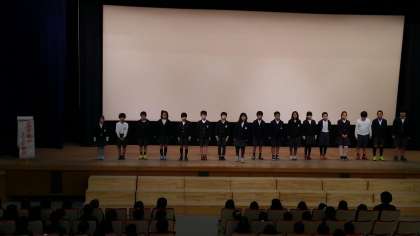 小学校児童会主催の人権集会を行いました。「一人はみんなのために みんなは一人のために」とのテーマに沿って各学級ごとに「なかまづくり発表」を行いました。人権集会を通して、なかまについて考え、偏見や差別を許さない態度を養ってほしいと思います。