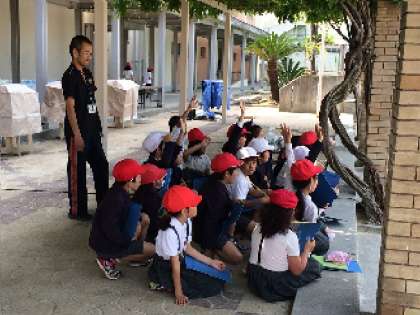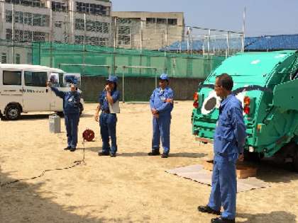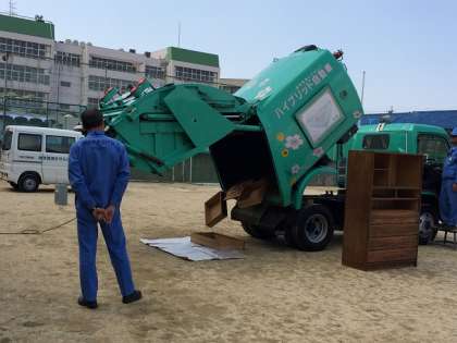 4年生は、環境事業局から来ていただいて、パッカー車体験をしました。タブレットで写真や動画を撮る役割も決めて、学習をはじめました。