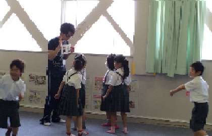 1年生外国語活動〜先生とあいさつ、そしてハイタッチ!!